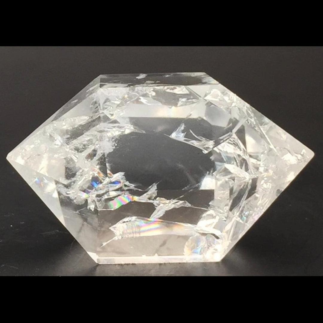 Crackle Quartz (also called Fire and Ice or Rainbow Quartz) has a high vibrational energy, which opens, balances, cleanses and aligns all chakras. It's good for activating the Third Eye and Crown chakras.