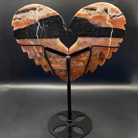 Indian Agate Heart Angel Wings on Stand - LARGE