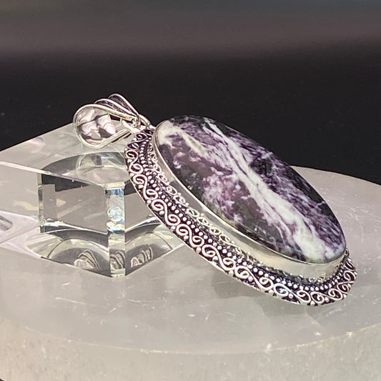 .925 Sterling Silver Charoite Pendant - HUGE!