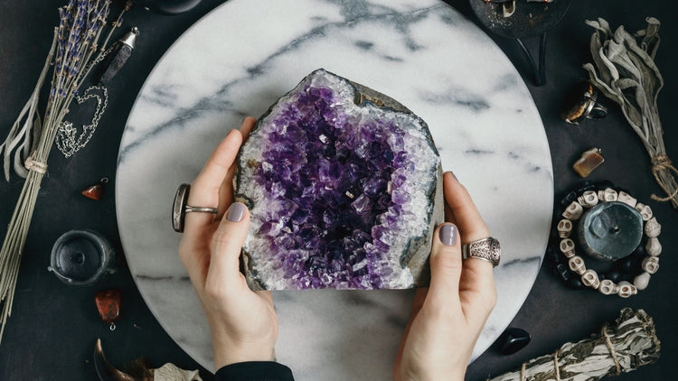 Blue and Moss Agate with Amethyst Cluster #4 with FREE Stand!