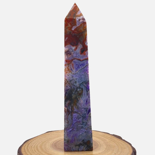 Blue and Moss Agate with Amethyst Freeform #3 with FREE Stand!