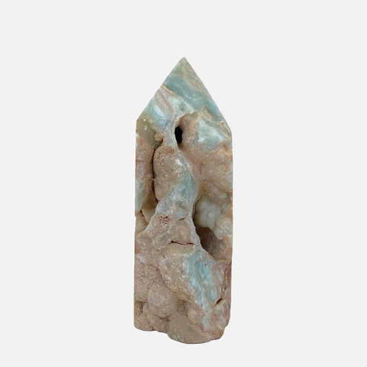 Blue Aragonite with Caribbean Calcite Tower #2 - 14cm