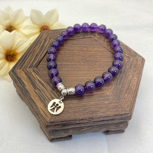8mm Amethyst Angel Charm Stretch Bracelet - Standard & Relaxed-Fit!