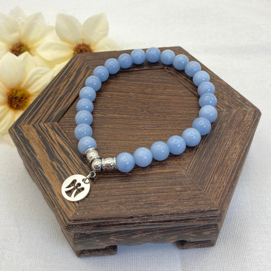 8mm Angelite Angel Charm Stretch Bracelet - Standard & Relaxed-Fit!