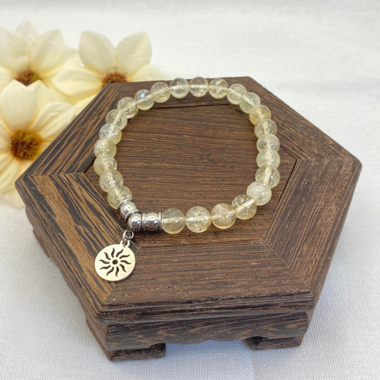 8mm Citrine Sun Charm Stretch Bracelet - Standard & Relaxed-Fit