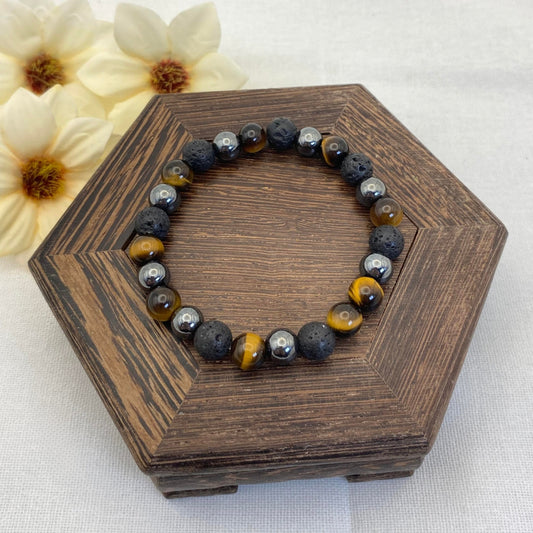 8mm Hematite/Lava Stone/Tiger's Eye Stretch Bracelet - Standard & Relaxed-Fit!