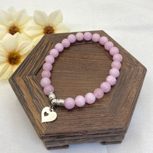 8mm Kunzite Heart Charm Stretch Bracelet - Standard & Relaxed-Fit!