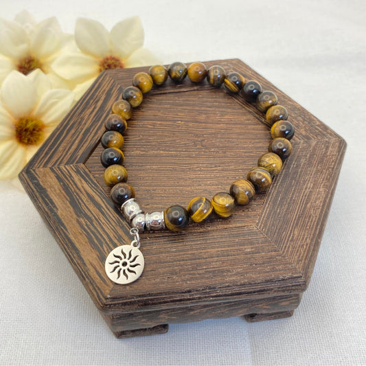 8mm Tiger's Eye Sun Charm Stretch Bracelet - Standard & Relaxed-Fit!
