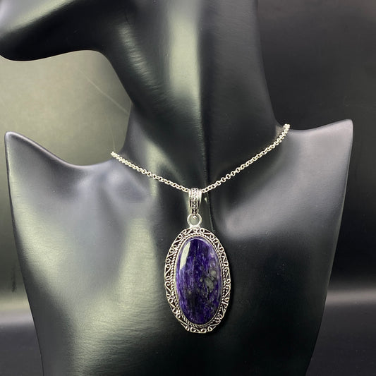.925 Sterling Silver Charoite Oval Pendant