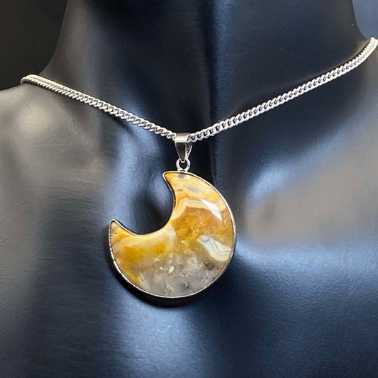 .925 Sterling Silver Crazy Lace Agate Moon Pendant #2