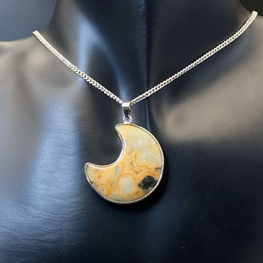 .925 Sterling Silver Crazy Lace Agate Moon Pendant #1