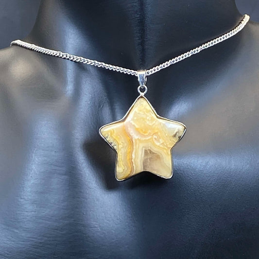 .925 Sterling Silver Crazy Lace Agate Star Pendant