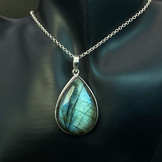 .925 Sterling Silver Labradorite Teardrop Pendant #1 - HUGE!