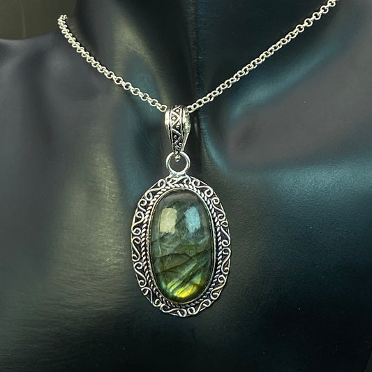 .925 Sterling Silver Labradorite Oval Pendant #1