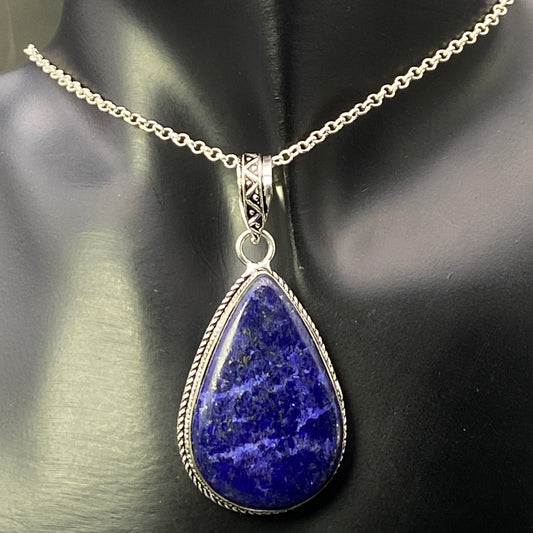 .925 Sterling Silver Lapis Lazuli Teardrop Pendant #1