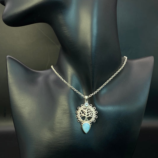 .925 Sterling Silver Larimar & Blue Topaz Tree of Life Pendant