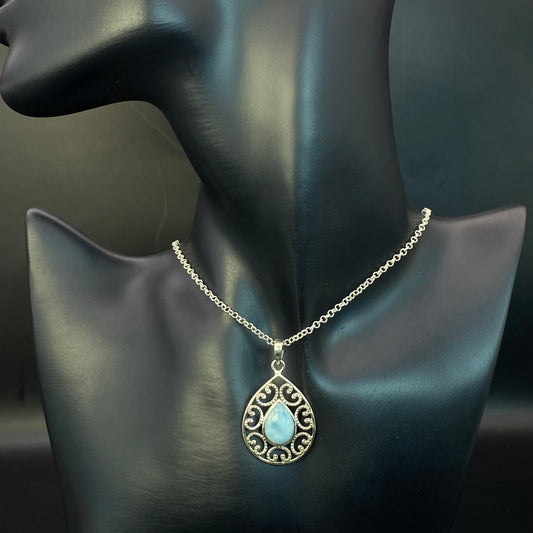 .925 Sterling Silver Larimar Filigree Pendant