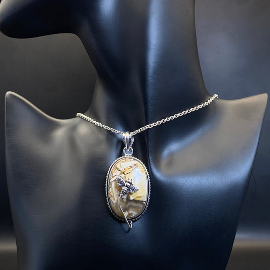 .925 Sterling Silver Brecciated Mookaite Jasper with Quartz Oval Bee Pendant
