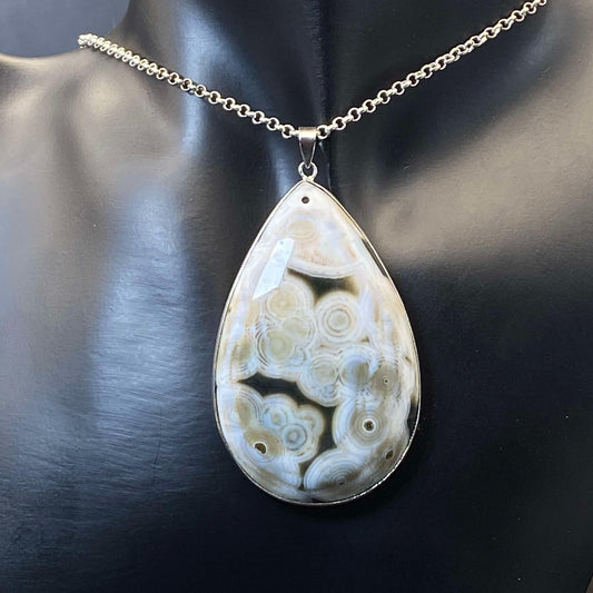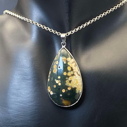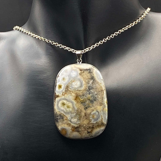 .925 Sterling Silver Orbicular Ocean Jasper Pendant #3