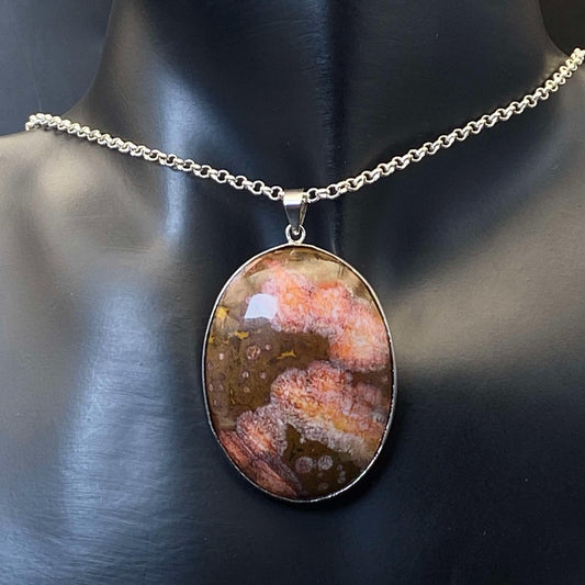 .925 Sterling Silver Orbicular Ocean Jasper Pendant #9