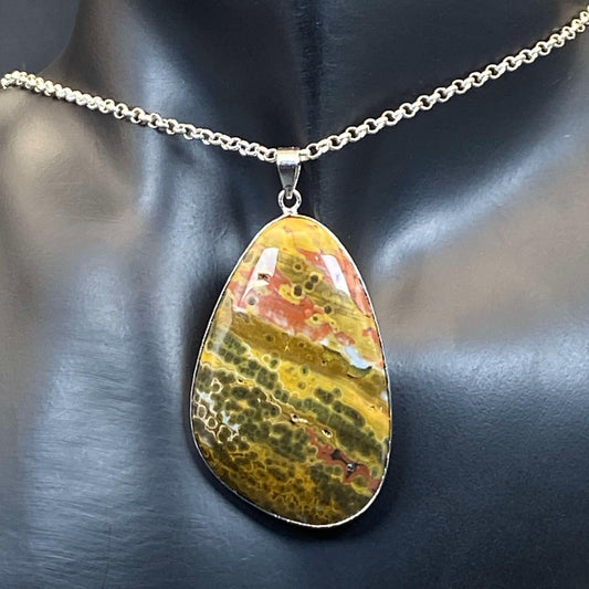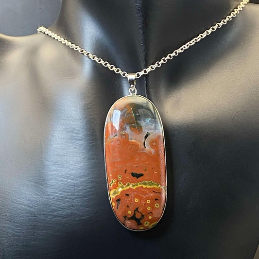 .925 Sterling Silver Orbicular Ocean Jasper Pendant #11