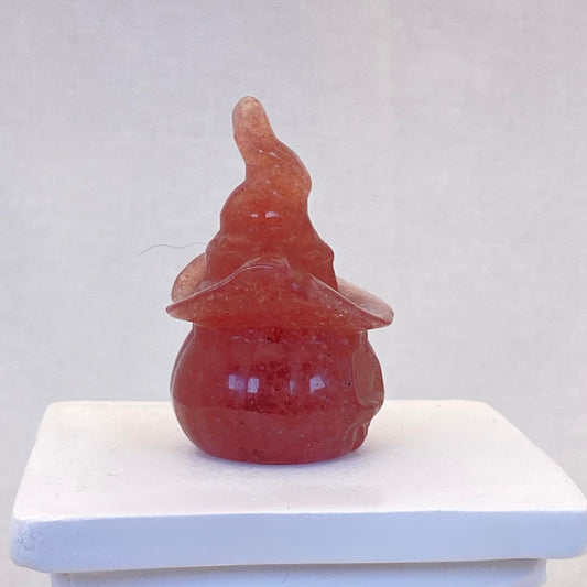 Strawberry Quartz Pumpkin with Witch Hat - Small