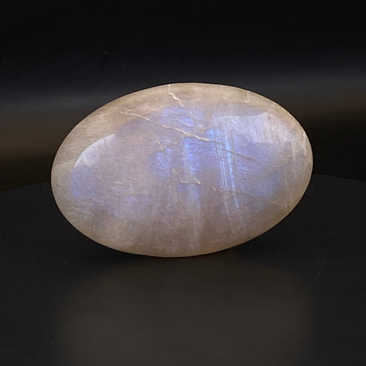 Peach Moonstone Palm Stone #2 - Strong Blue Flash!
