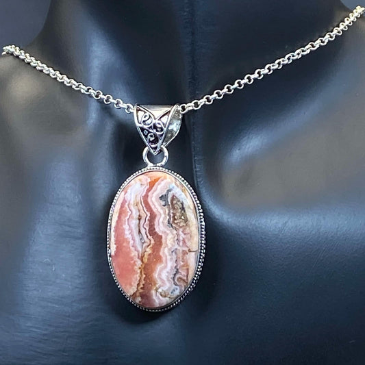 .925 Sterling Silver Rhodochrosite Oval Pendant