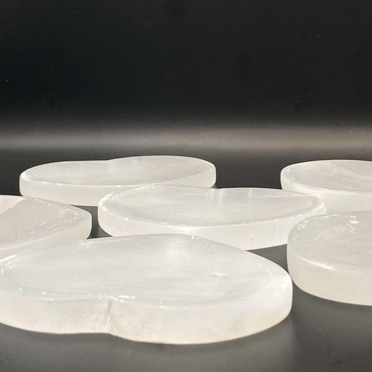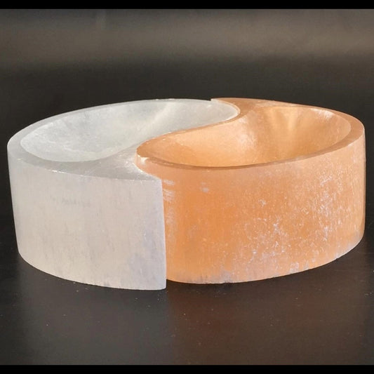 Peach and White Selenite Yin Yang Trinket Bowl Set