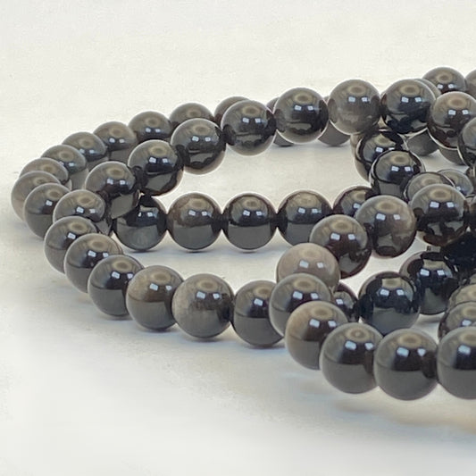 8mm Silver Sheen Obsidian Stretch Bracelet - Standard & Relaxed Fit!