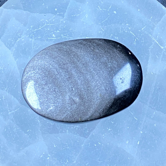 Silver Sheen Obsidian Pillow Palm Stone #2