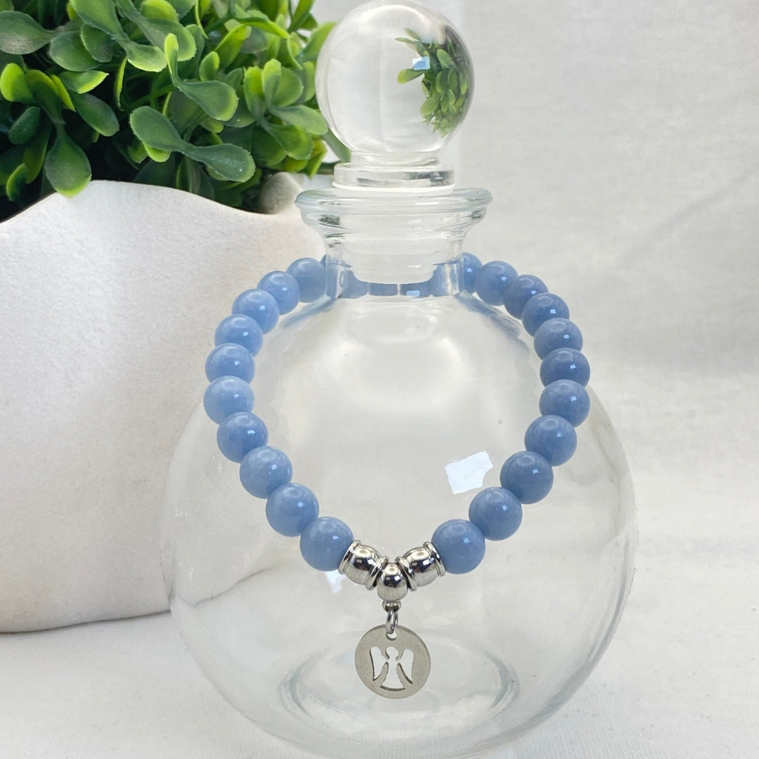 8mm Angelite Angel Charm Stretch Bracelet - Standard & Relaxed-Fit!