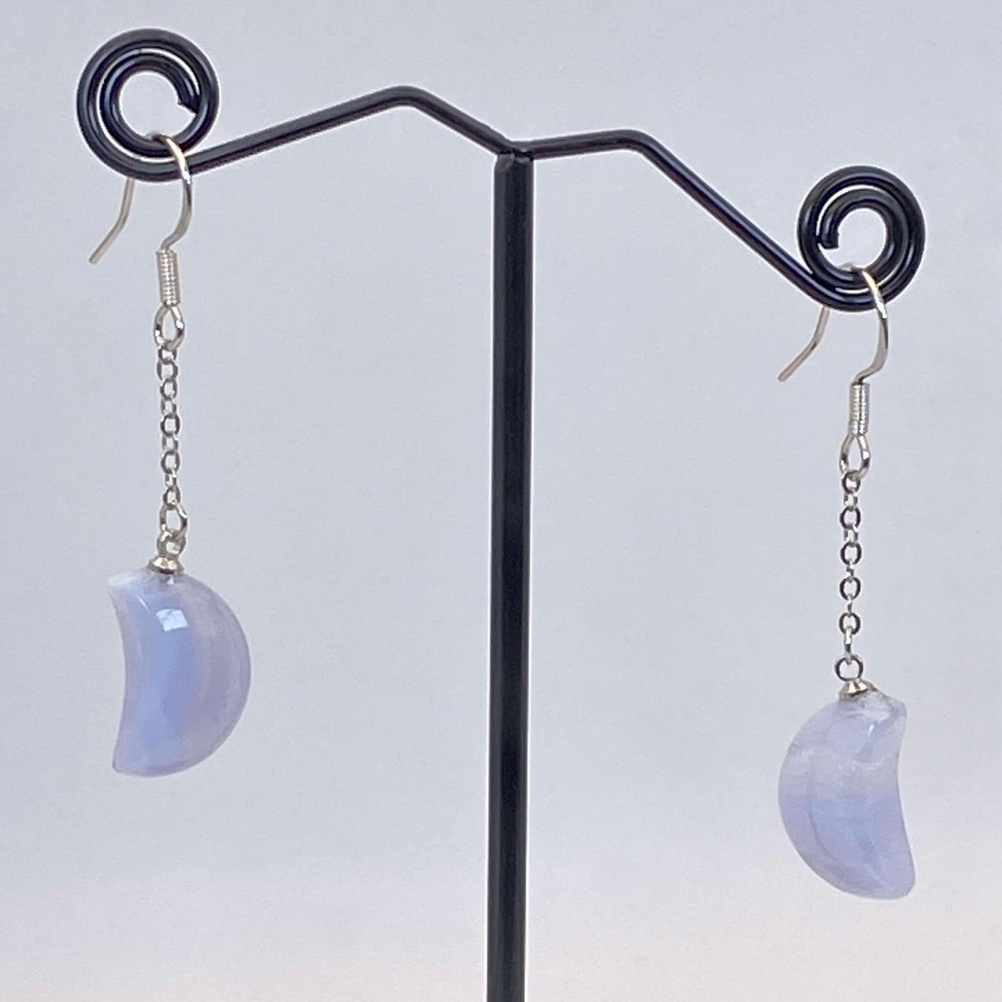 .925 Sterling Silver Blue Lace Agate Moon Earrings
