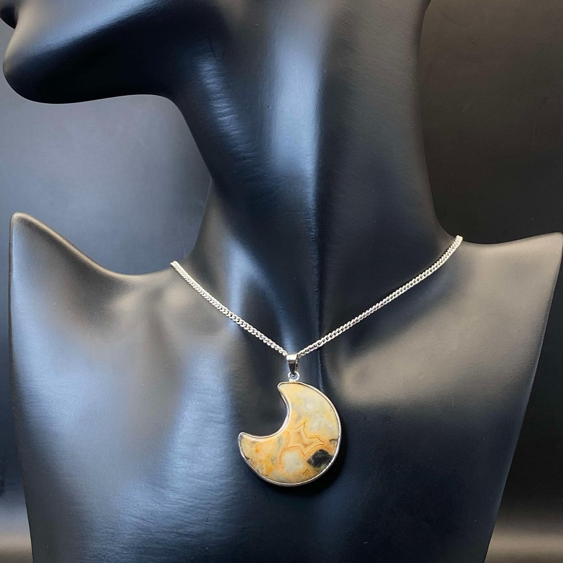 .925 Sterling Silver Crazy Lace Agate Moon Pendant #2