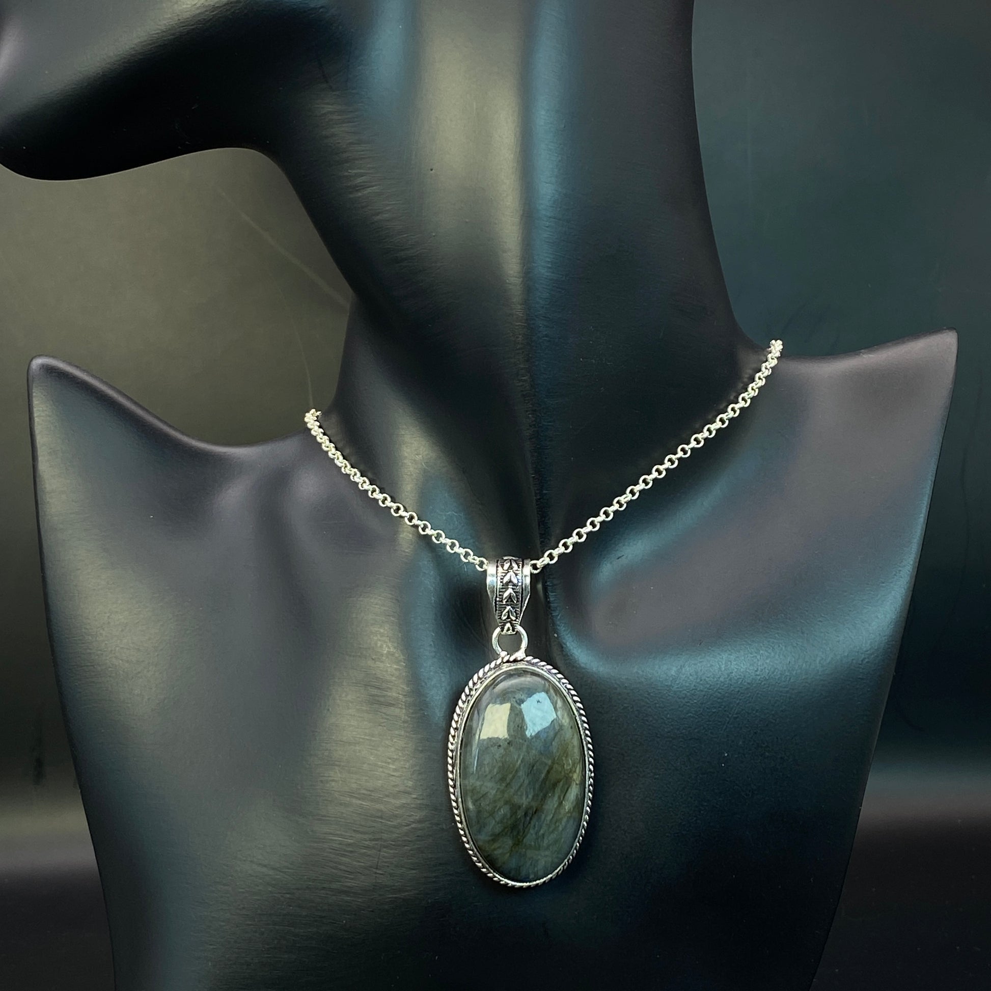 .925 Sterling Silver Labradorite Oval Pendant #1