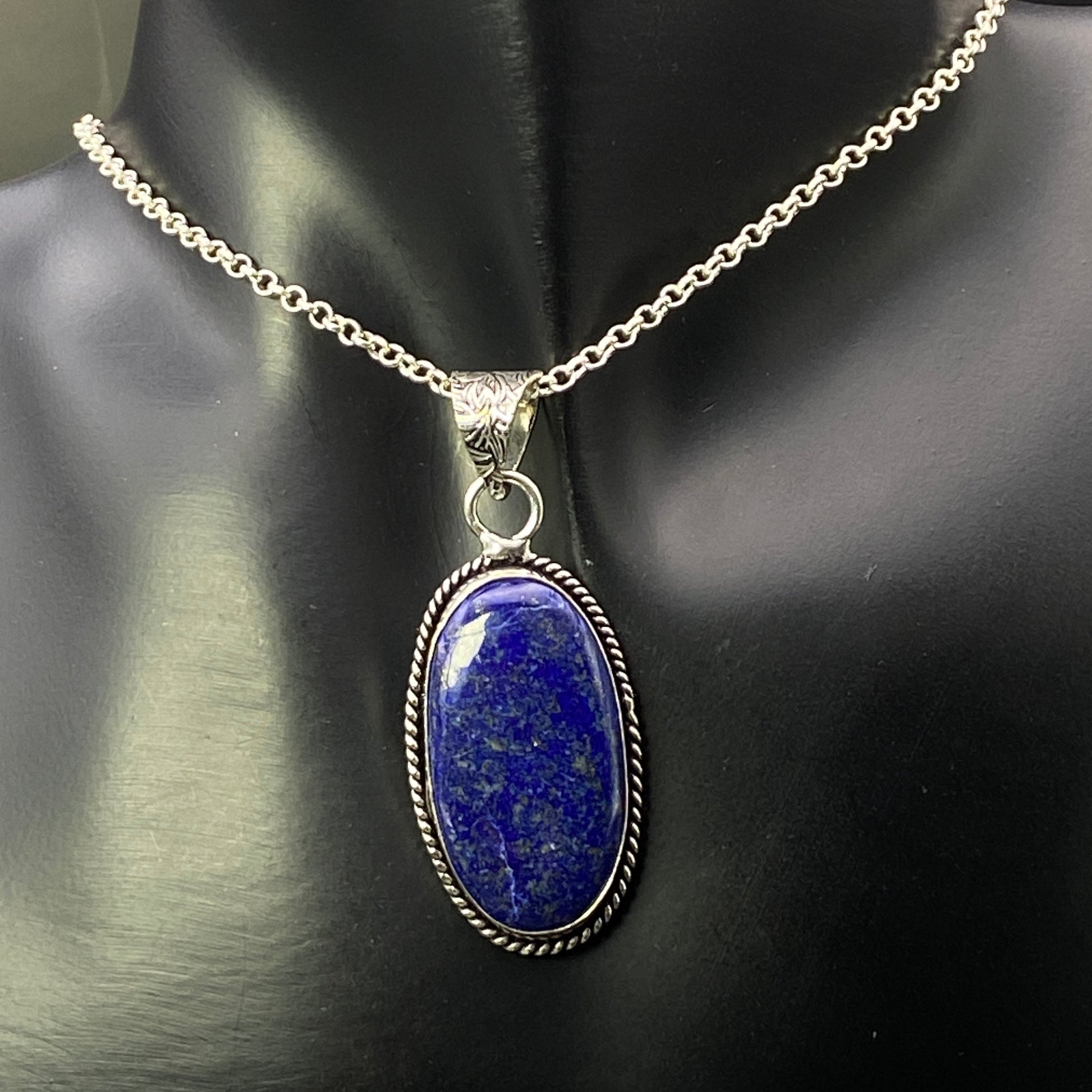 .925 Sterling Silver Lapis Lazuli Oval Pendant #1