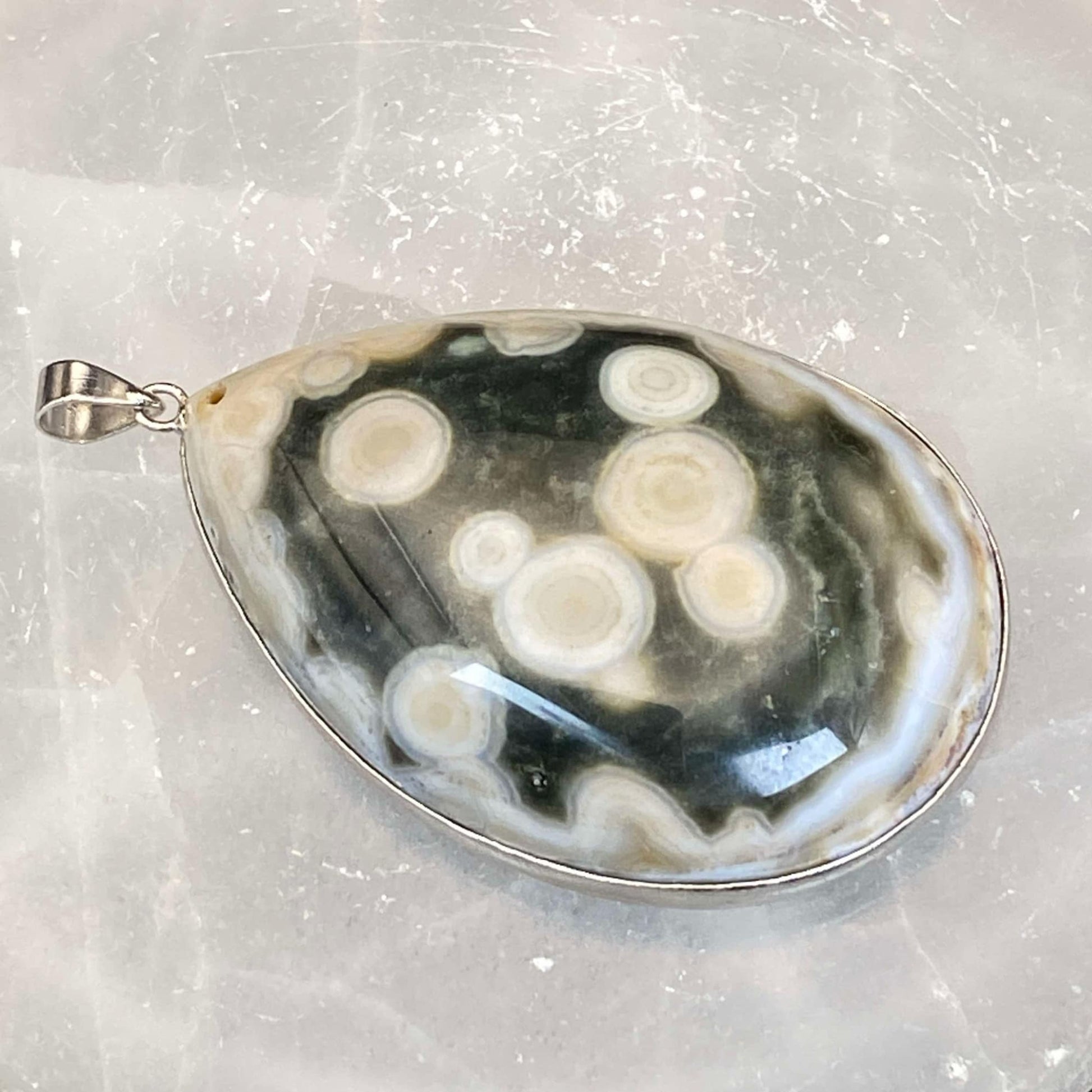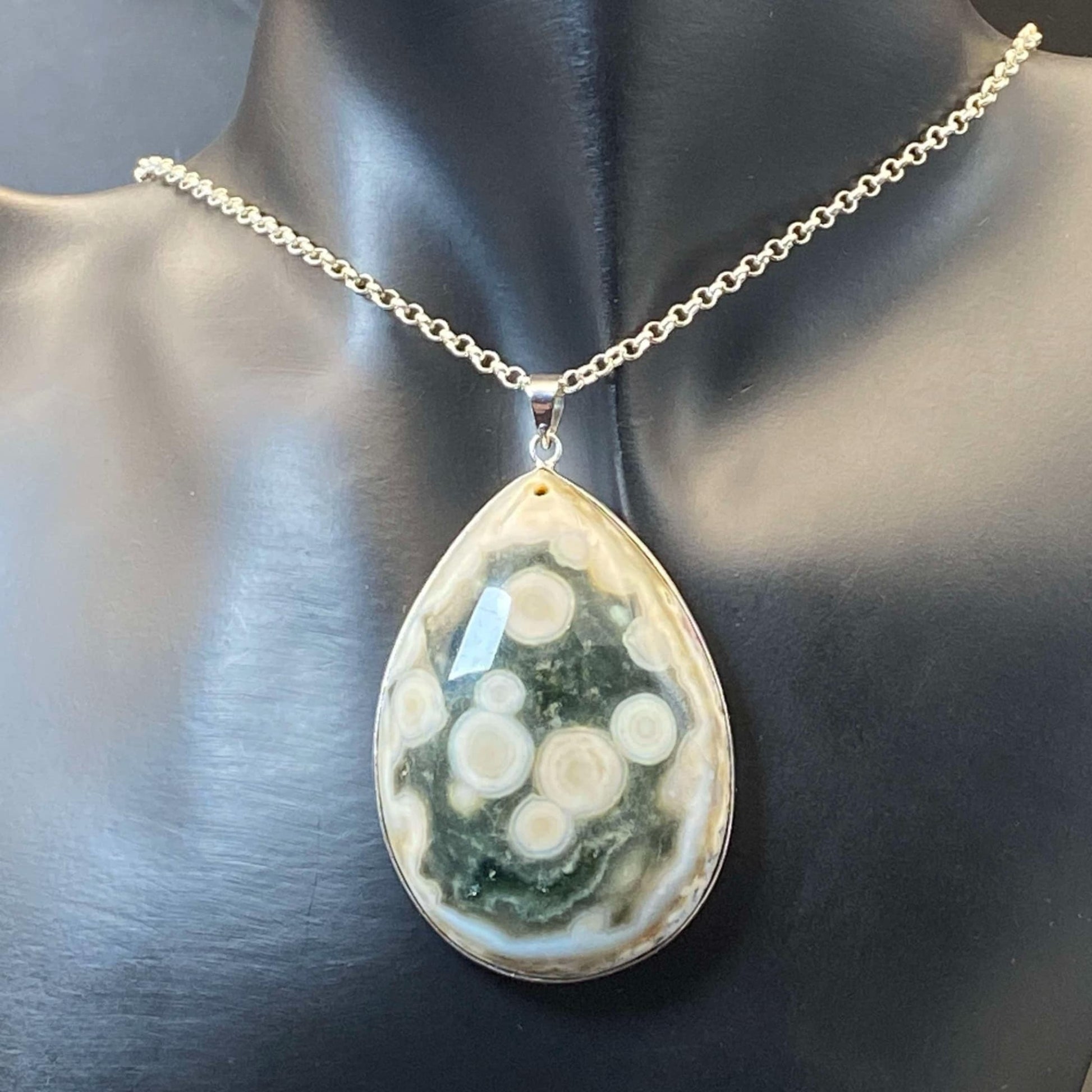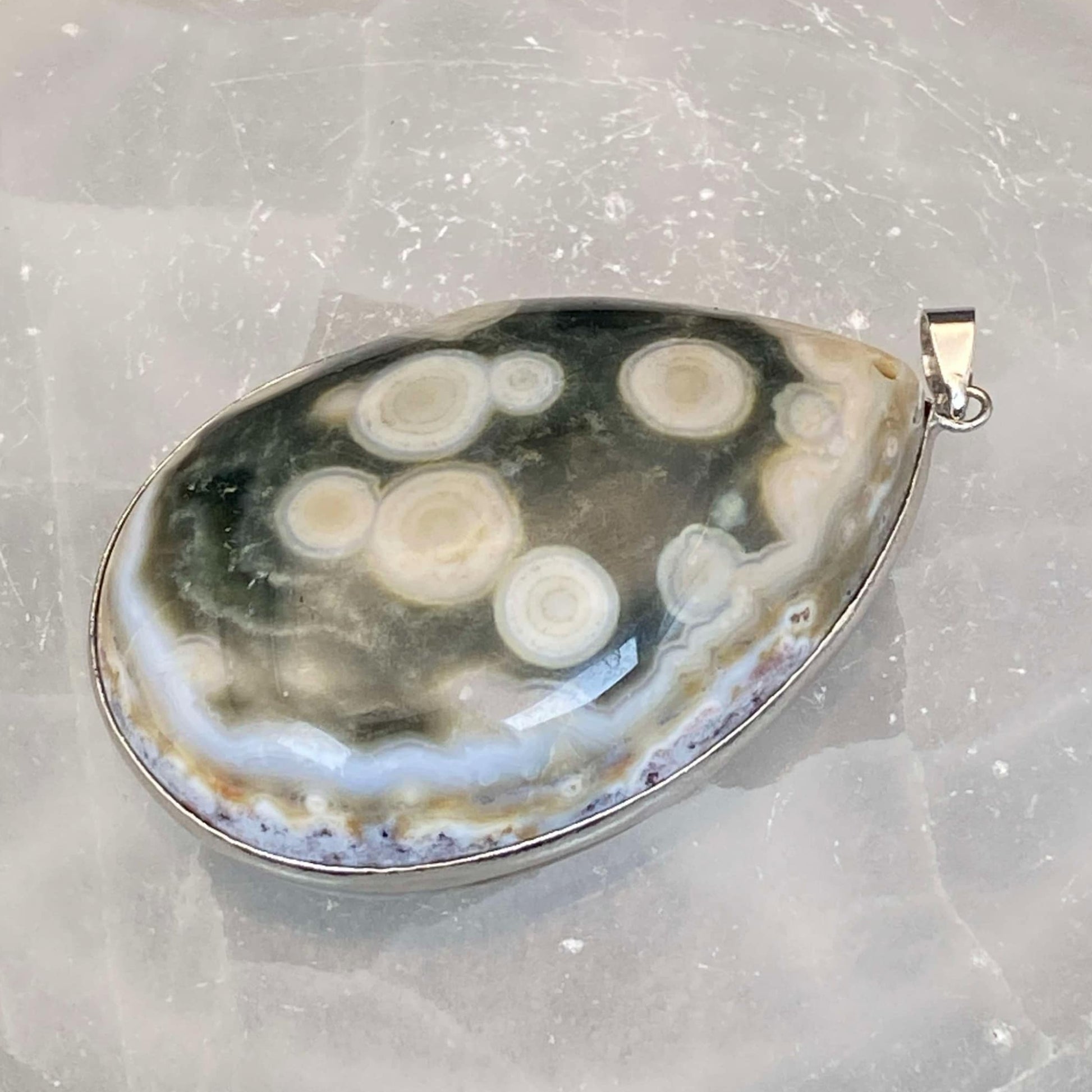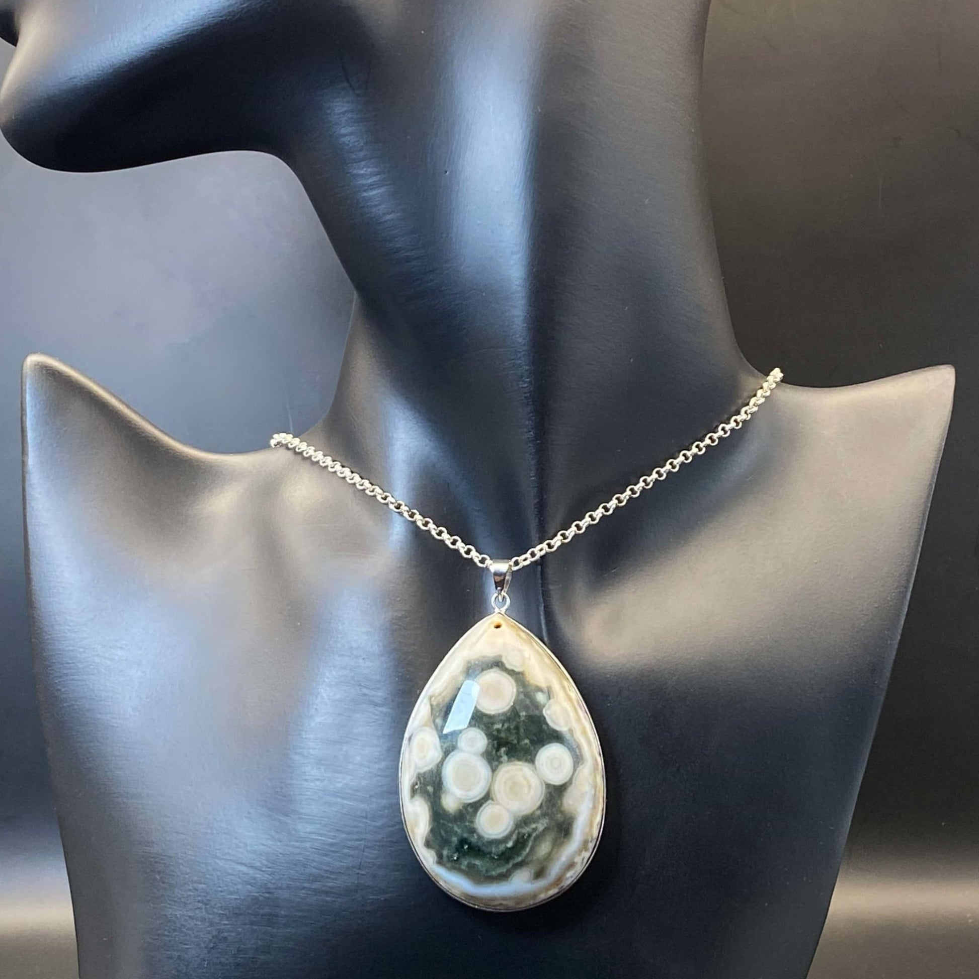 .925 Sterling Silver Orbicular Ocean Jasper Pendant #10