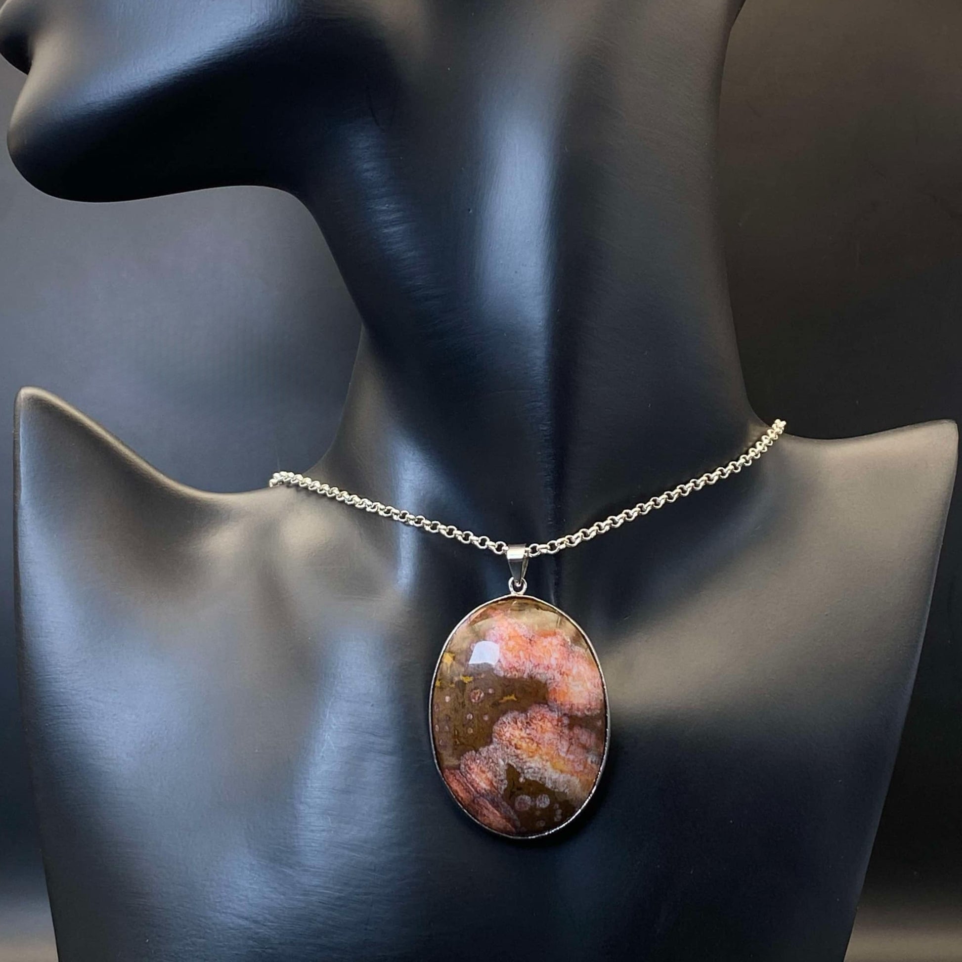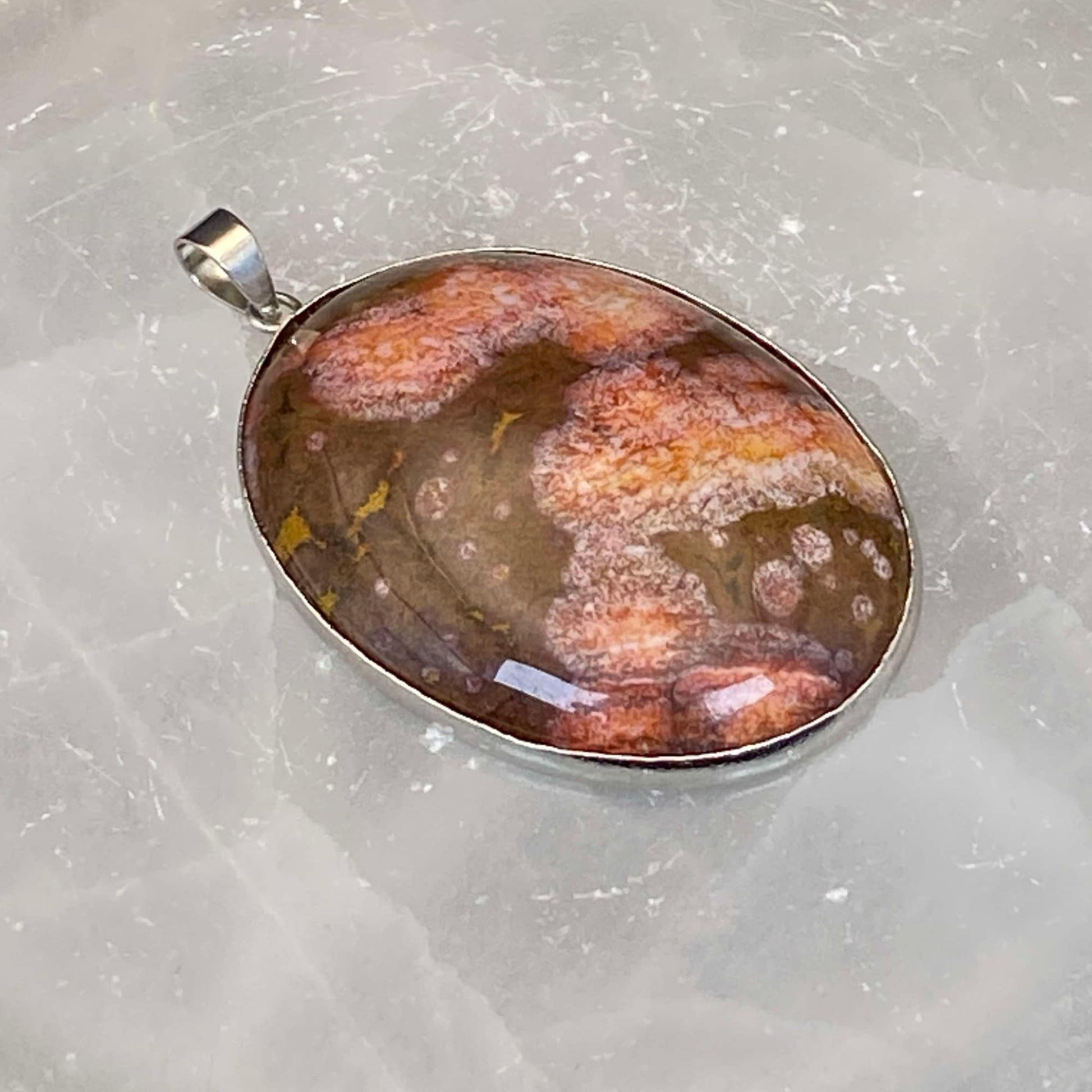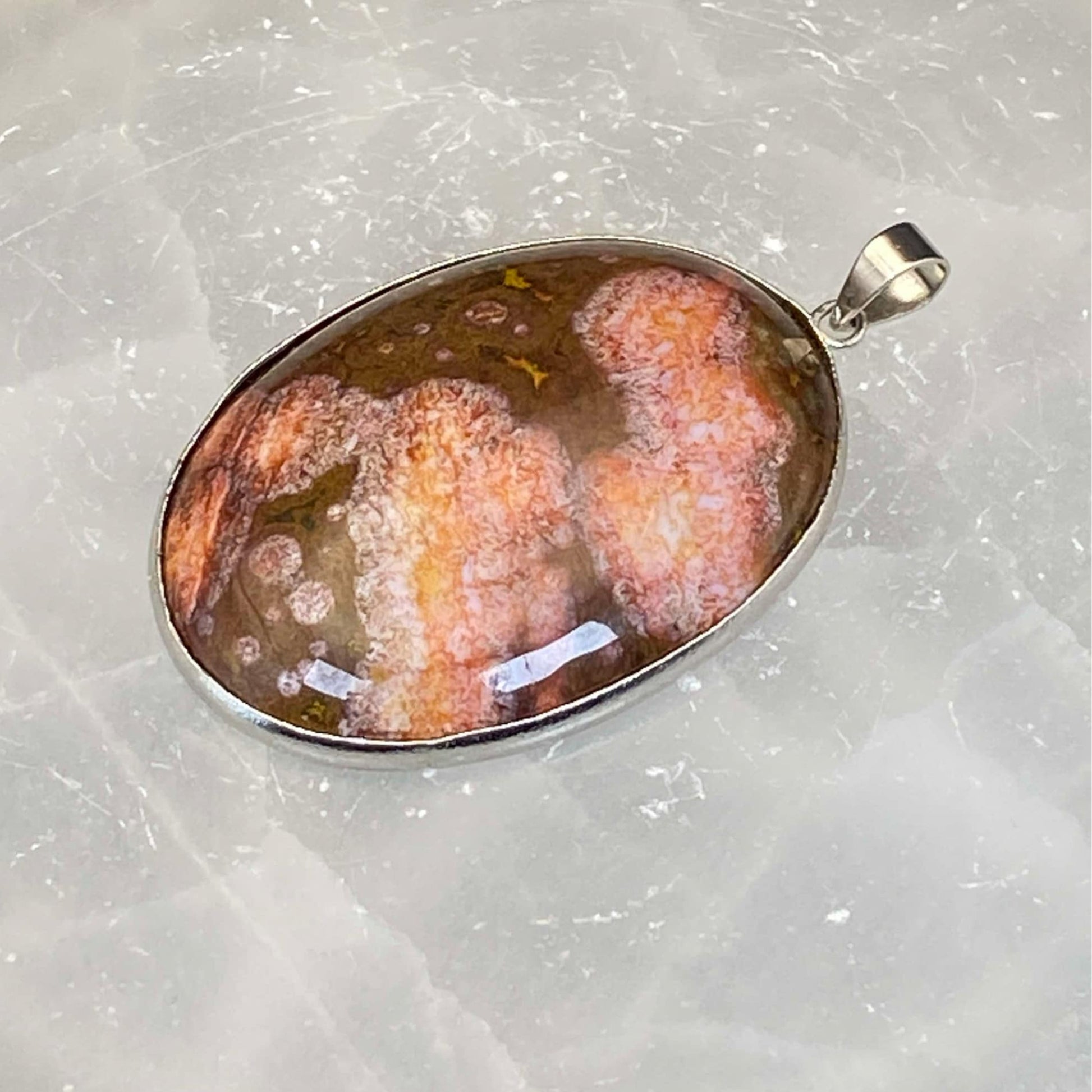 .925 Sterling Silver Orbicular Ocean Jasper Pendant #3