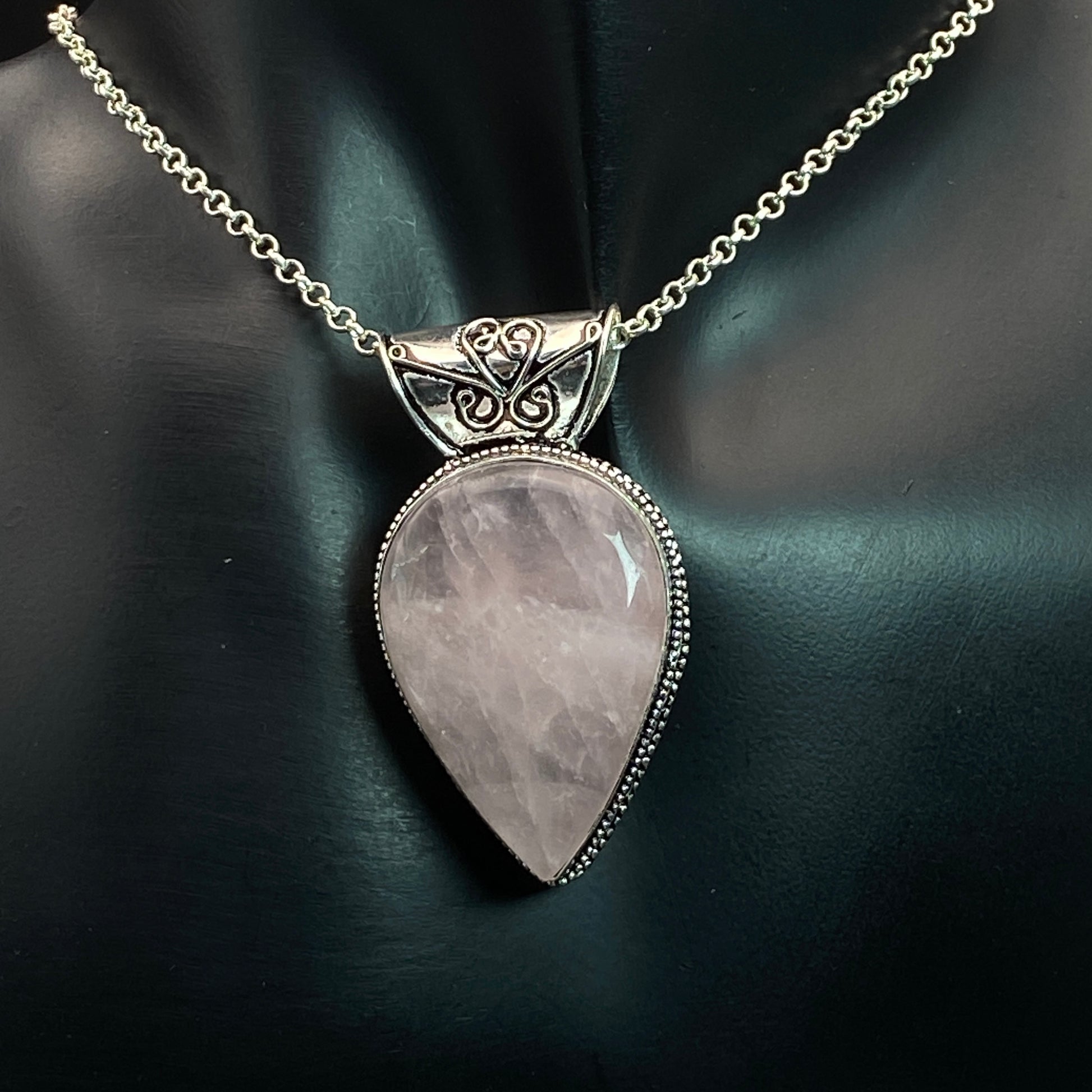 .925 Sterling Silver Rose Quartz Teardrop Pendant #5