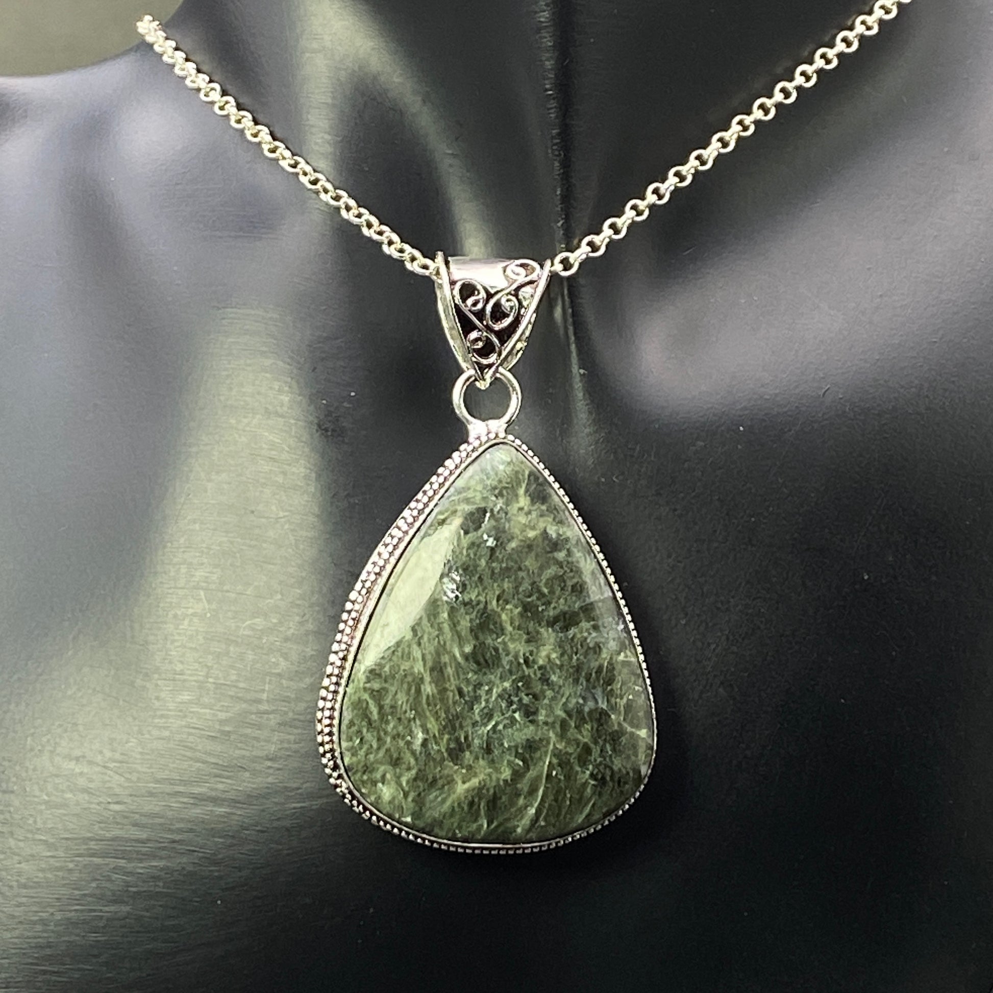 .925 Sterling Silver Seraphinite Teardrop Pendant