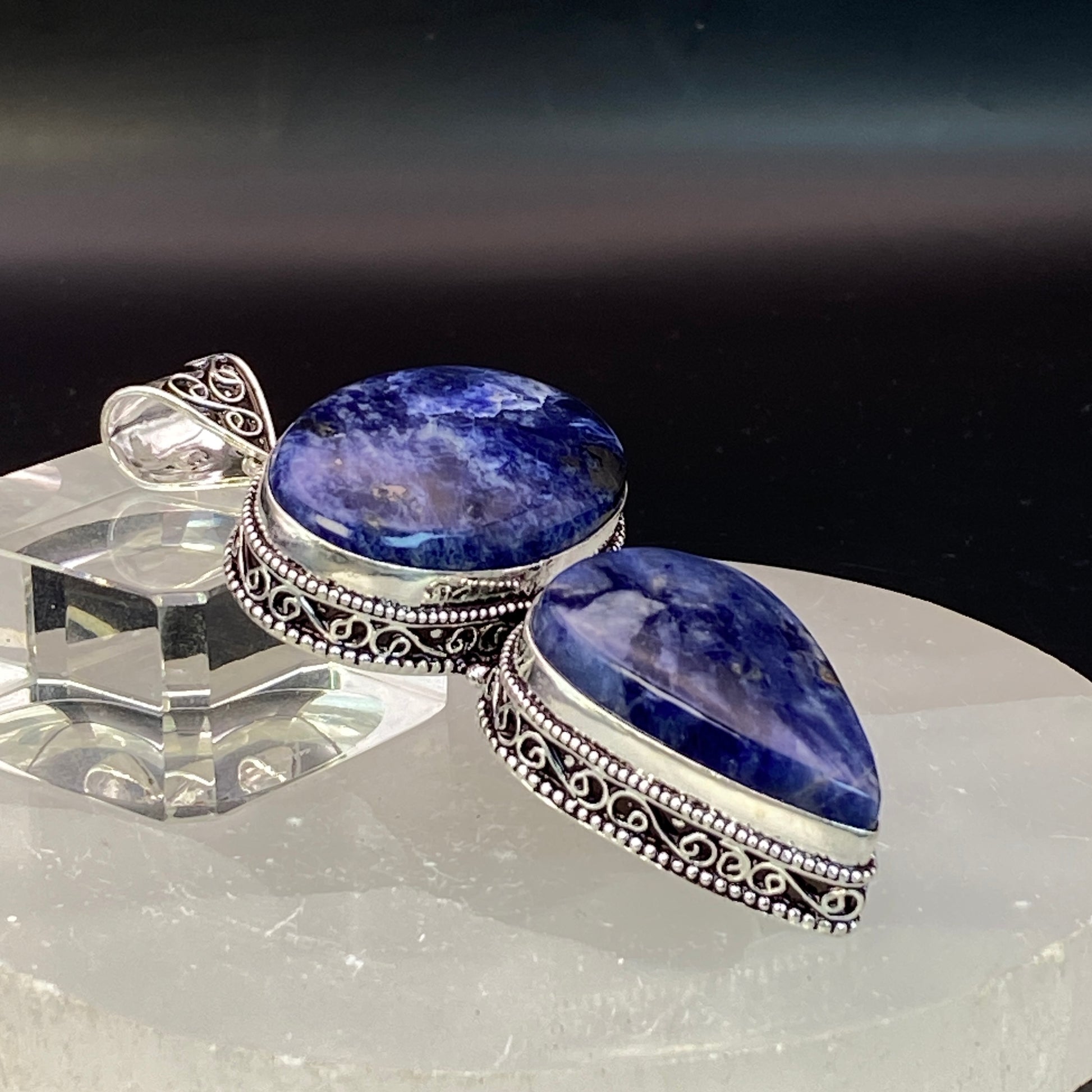 .925 Sterling Silver Sodalite Pendant - HUGE!