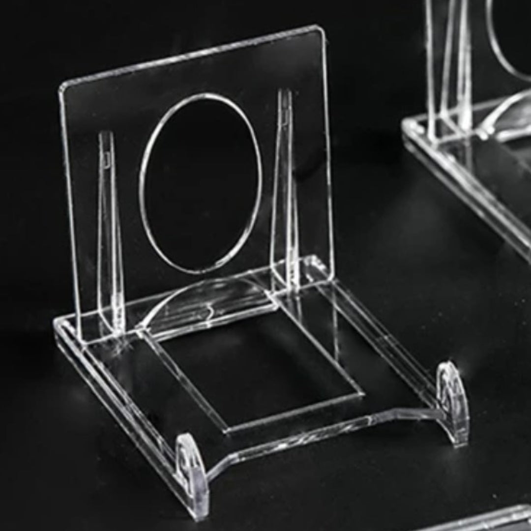 This nifty, adjustable acrylic stand comes in 2 pieces - simply slot one panel into the other and adjust by sliding top panel back and fourth for the perfect fit and angle of your display piece. Great for those crystals that refuse to stand on their own, from slabs to freeforms to whatever needs a little helping hand, and other stands just won't do. We've found the perfect solution!