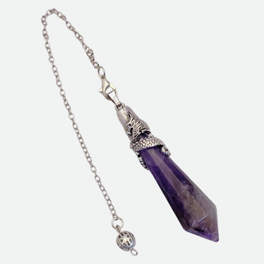 Beautiful, dragon-wrapped faceted pendulum. Has a nice weight to it compared to most others.