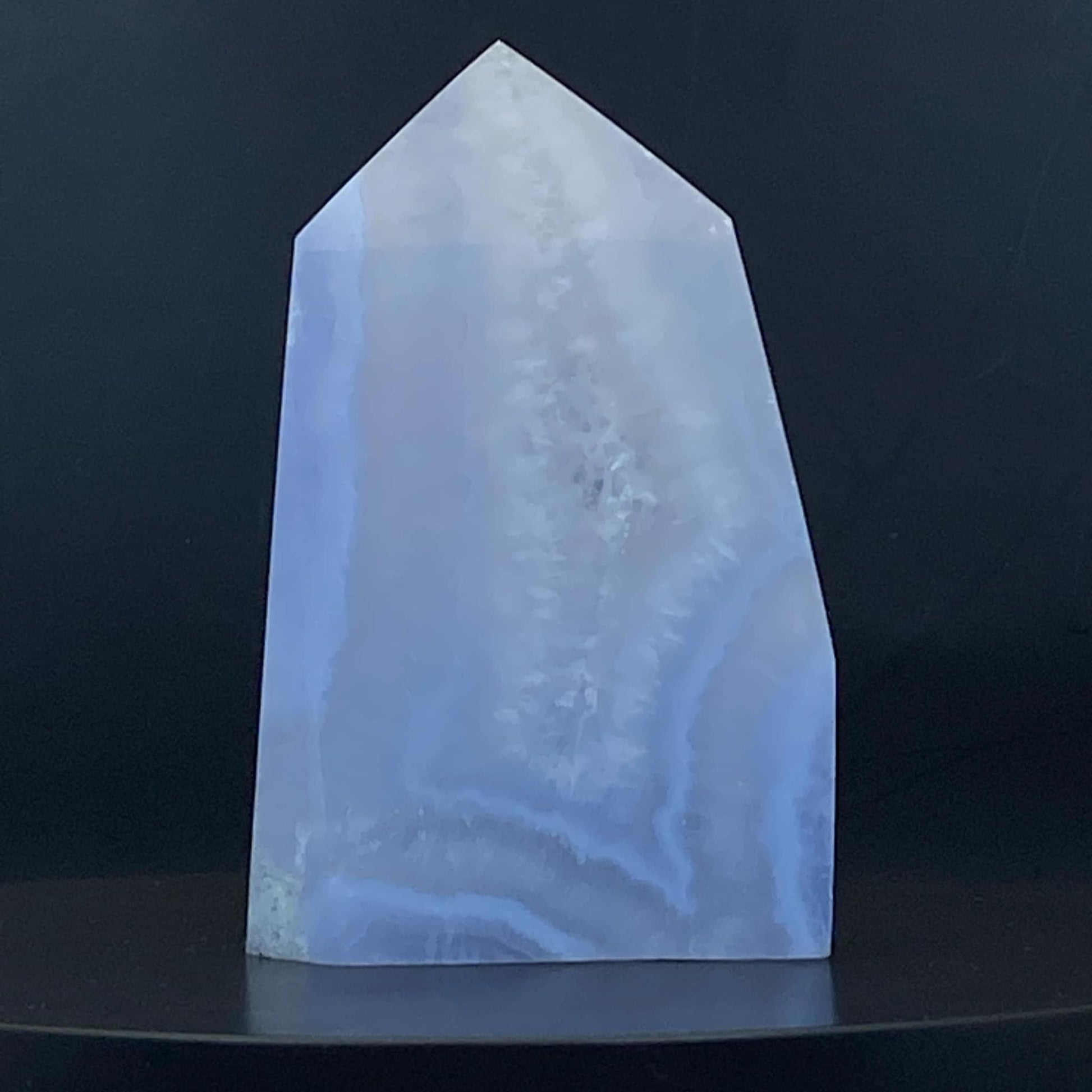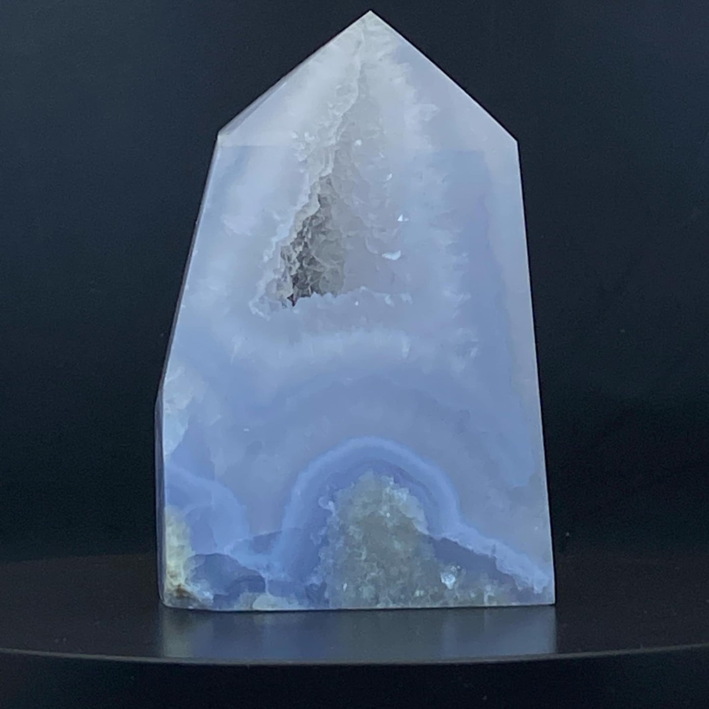 A lower-quality crystal than our high-grade range, but just as captivating with its unique blue banding and sparkly druzy caves. A weighty Blue Lace point at a great price.