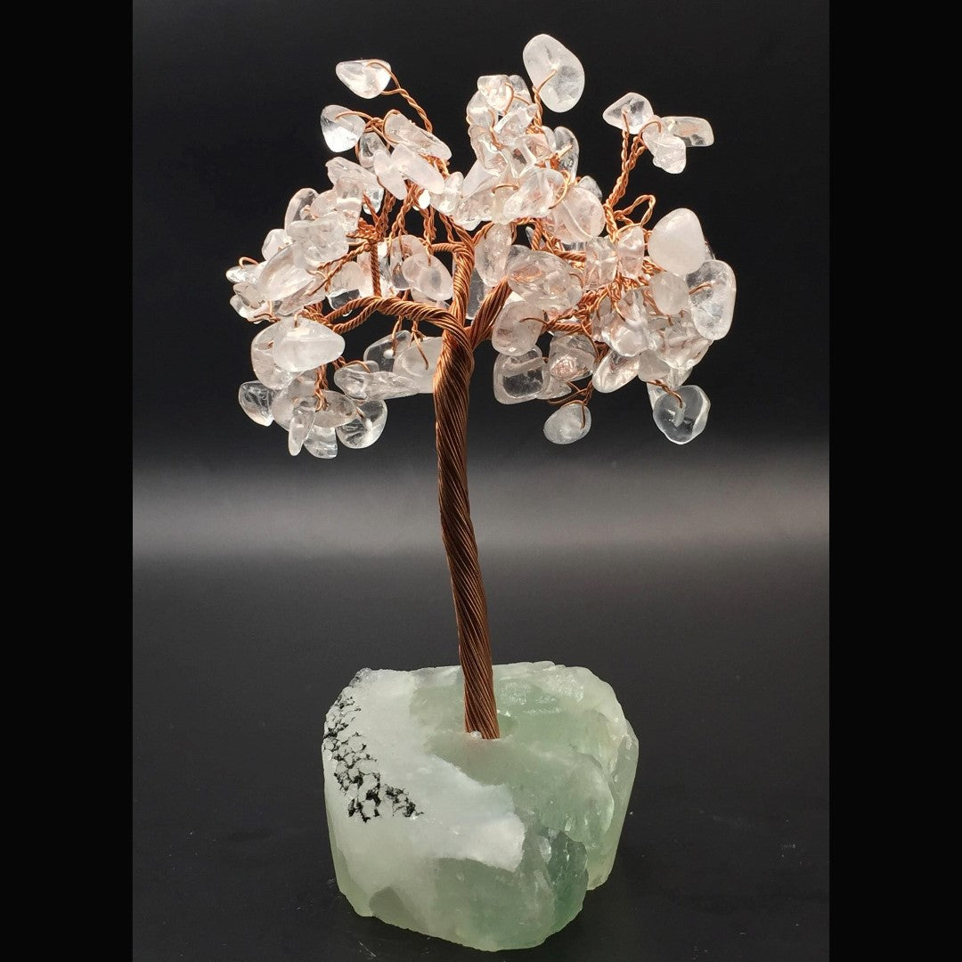 Copper wire-wrapped Clear Quartz chip tree on a raw Fluorite base. Arrange the branches how you wish to create the perfect little tree.
