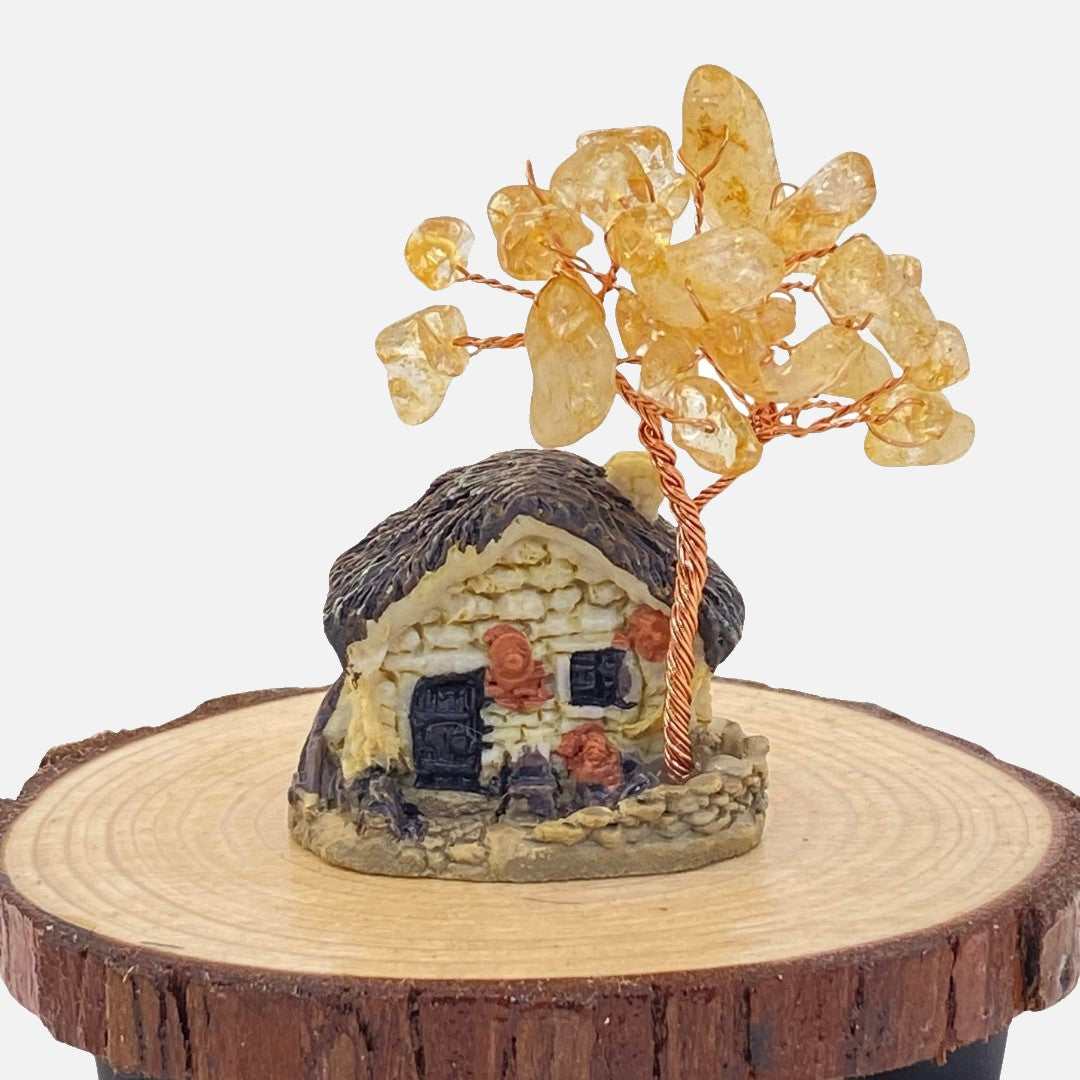 Cute little cottage with a mini Citrine chip tree. Also comes in a range of other stones.