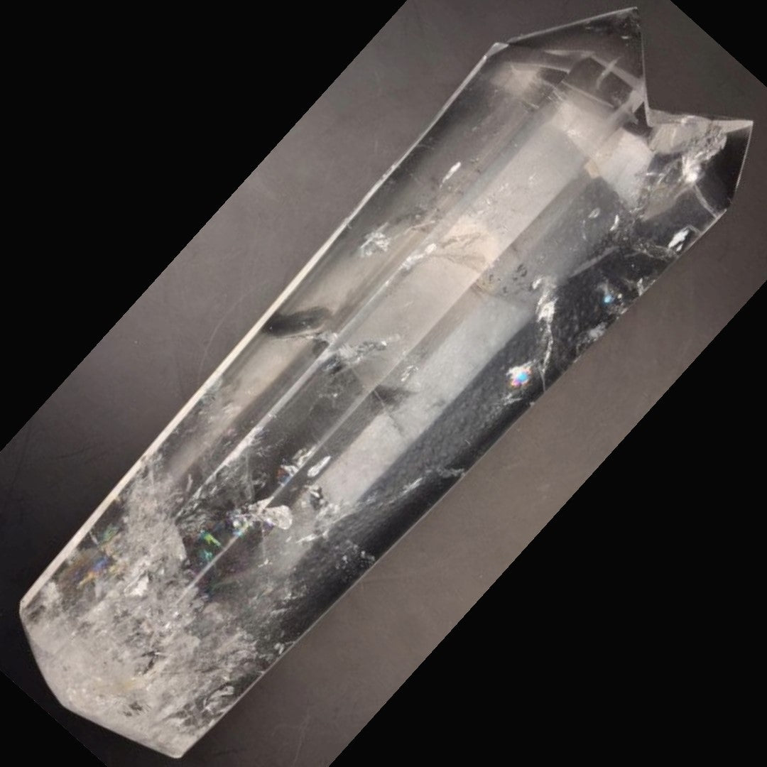 One 'bloody spectacular' statement piece of crystal-clear Clear Quartz! This twin-point tower is a sight to behold with its spectre of rainbows. You'll be the envy of all your crystal-loving friends with this big beauty in your display. We'll truly be sad to see this one go (as well as its sister piece we also have available), but we know the person it's intended for will absolutely love it forever.đź’™