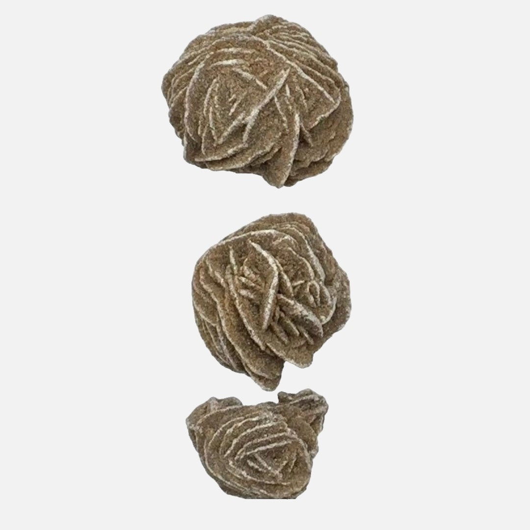 Desert Rose (also known as Desert Rose Selenite, Gypsum Rose and Sand Rose) is an intricate rose-like formation of crystal clusters of Gypsum or Baryte, which include abundant sand grains. It tends to be formed over a couple of hundred years, rather than thousands or millions like the majority of other crystals and minerals. It is commonly found in most deserts around the world, in countries such as Mexico, Morocco, Saudi Arabia, Australia, Tunisia and Afghanistan. Most specimens are very fragile and should be held with great caution. Desert Rose is said to enhance psychic abilities, dreams and past-life recall. It can also raise your vibrations so that you will experience white light and work with your guardian angels. This stone will aid in opening and cleansing your upper chakras and restore the balance that you may have lost. A perfect meditation tool, it helps you stay grounded and assists with mental clarity and focus, manifestation, and self-expression, unlocking divine will. A great stone to place by your bedside, workspace, or meditation room as it helps cleanse one's aura and environment. Due to it mainly being Selenite-based, it will charge and cleanse other crystals when placed around them. A traditional Native American tale states that Desert Rose were carved by warriors who returned home from the spirit world. The roses were said to have been spread across the Earth to protect these spirits' homeland.