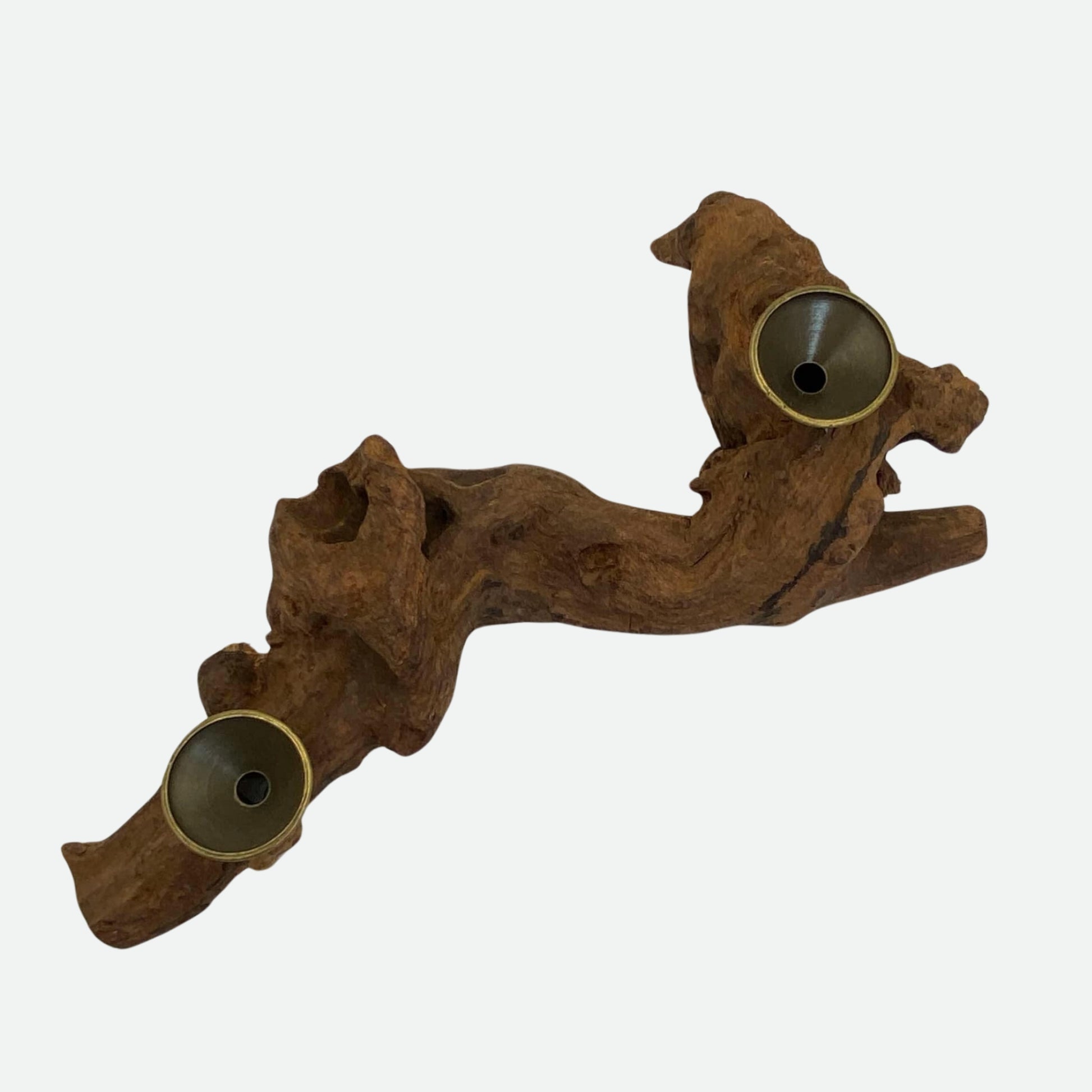 One-of-a-kind natural wood sphere stand. Holds 2 spheres.