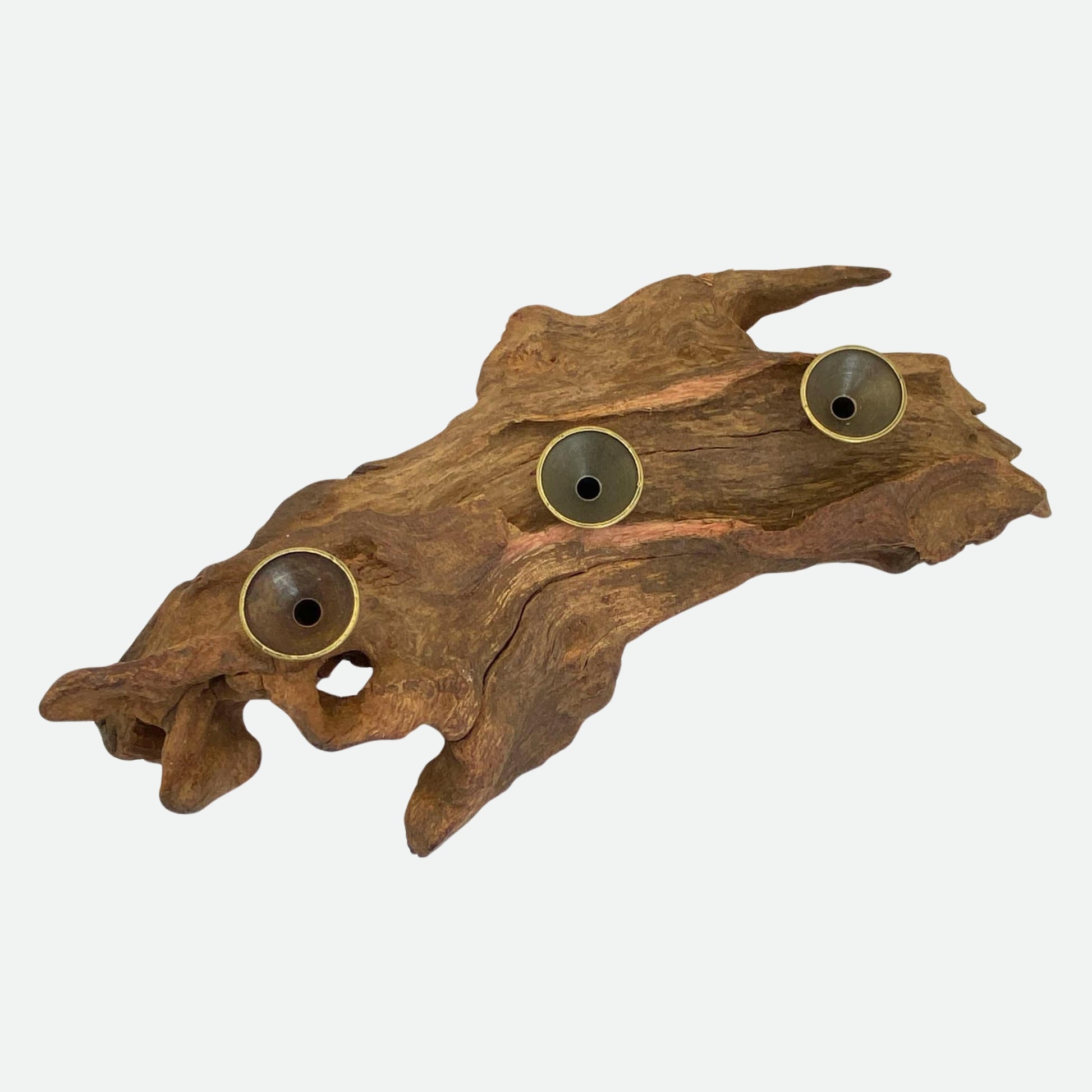 One-of-a-kind natural wood sphere stand. Holds 3 spheres.